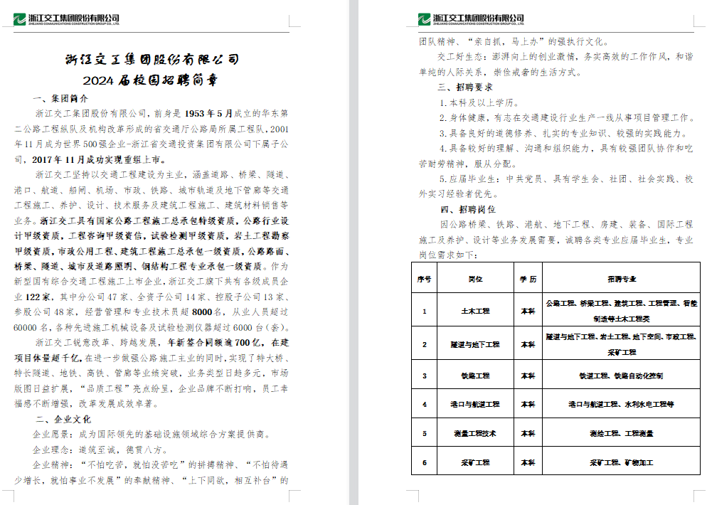 浙江交工集团股份有限公司2023届校园招聘简章