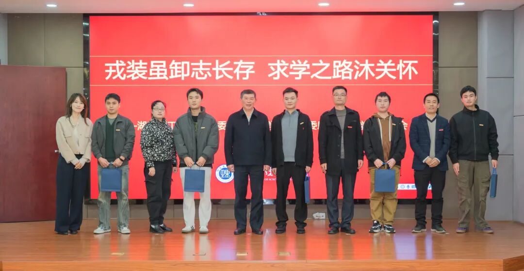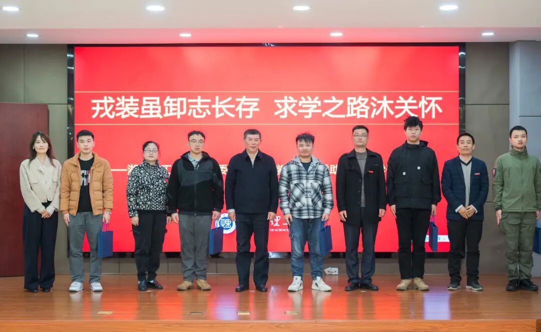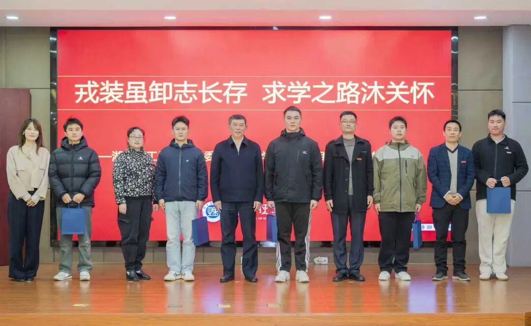 活动尾声,校院关工委领导为退役专升本新生郑重佩戴校徽、赠送定制纪念品。熠熠校徽象征着新身份的开启与初心的传承,精美纪念品承载着校院对学生逐梦前行的殷切期许。