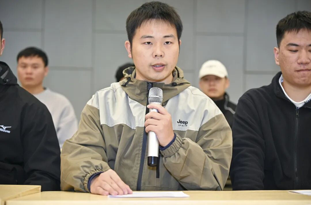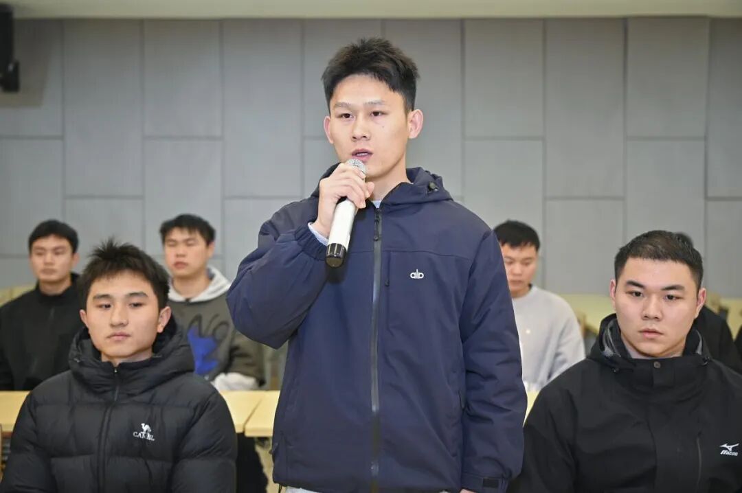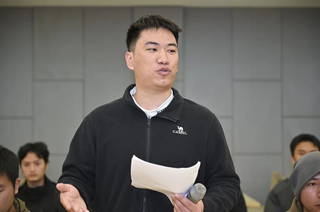 随后,退役复学在校学生代表开启经验分享。22级覃开禧结合自身经历,分享了如何将部队优良作风融入校园生活、在志愿服务中践行责任担当、在省级以上学科竞赛中攻坚克难的心路历程,每一步都彰显军人本色,为新入学的退役专升本学生树立了先锋模范标杆;