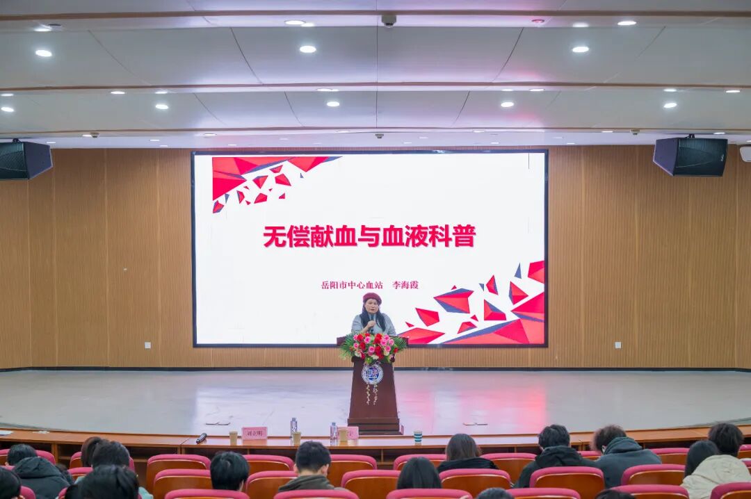 为积极响应岳阳市无偿献血倡议,普及血液科学知识,引导学生树立奉献社会、关爱生命的责任意识,12月24日下午,williamhill威廉希尔网址于17118开展“无偿献血与血液科普”专题讲座,特邀岳阳市中心血站李海霞老师主讲,williamhill威廉希尔网址200余名师生到场聆听。
